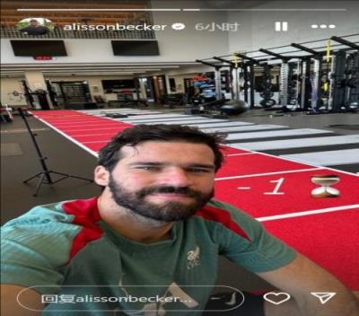 体育资讯11月12日报道宣称 不久前,阿利森在社交媒体上晒出了在健身房训练的照片,并且配文:-1。
