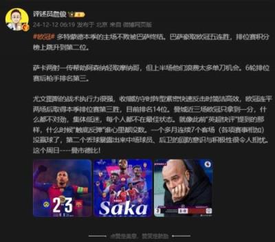 体育资讯12月12日报道宣称 本轮欧冠多场战罢,赛后评述员詹俊在个人社媒上点评了几场比赛。