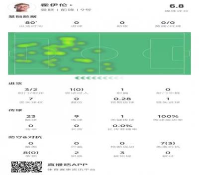霍伊伦本场比赛数据: