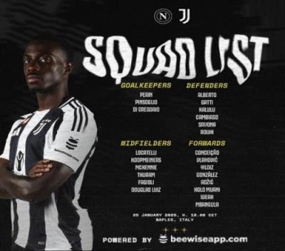 尤文客战那不勒斯大名单:新援穆阿尼入选,DV9、坎比亚索在列