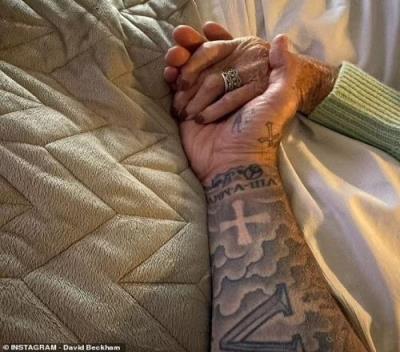 贝克汉姆晒出自己握着凯丝的手的照片,配文:永远在我们心中......你永远是我在曼联每一天看到的第一张脸,也是最后一张脸,总是你坐在老特拉福德球场的接待处,等着把比赛门票给我。