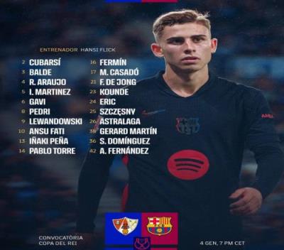 体育资讯01月04日报道宣称 巴萨官方发布国王杯名单,因注册问题,奥尔莫、维克托缺席。