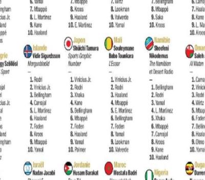 体育资讯11月9日报道宣称 金球奖杂志公布了金球奖各国、地区记者投票详情。