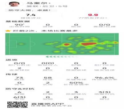 卓越!马奎尔本场数据:6次解围,3次抢断,9次对抗6次成功