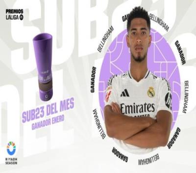 体育资讯1月28日报道宣称 官方消息,贝林厄姆当选西甲1月最佳U23球员。