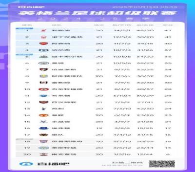 其中利物浦、森林、切尔西、曼城、伯恩茅斯都位列英超前七。