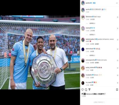 体育资讯8月11日报道宣 曼城点球大战8-7战胜曼联,夺得2024社区盾杯冠军。夺冠后,曼城新援萨维尼奥晒图庆祝。