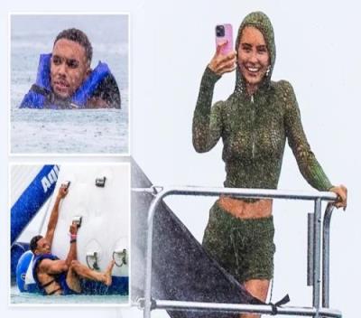 据太阳报消息,这次在巴巴多斯的倾盆大雨中,他们在海上设计了一个漂浮的游乐场,也花费4000英镑租用了一艘游艇出海游玩。本周早些时候,阿诺德与女友在巴巴多斯的海滩游玩,享受日光浴,在去玩冲浪板之前,他们在水边散步,拥抱在一起。
