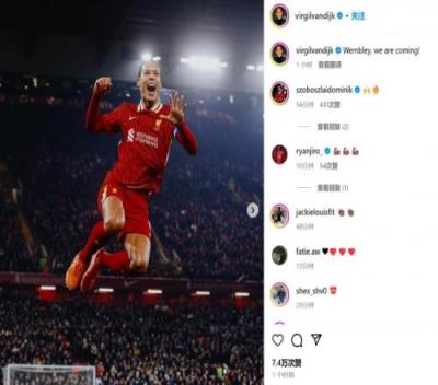 范迪克在赛后通过社媒晒出自己的庆祝照,并配文:“温布利,我们来了!”