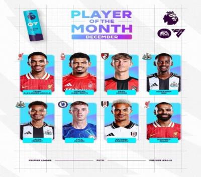 体育资讯1月2日报道宣称 英超12月最佳球员候选名单出炉,萨拉赫、帕尔默、阿诺德等球员获得提名。