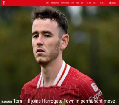 利物浦官方:22岁青训中场汤姆希尔转会英乙哈罗盖特镇