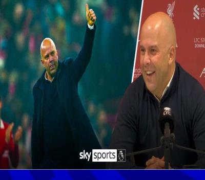 体育资讯12月27日报道宣称 英超第18轮利物浦3-1逆转莱斯特城,将榜首优势扩大至7分,赛后利物浦主帅斯洛特在发布会上自省,表示不宜过早“开香槟”。
