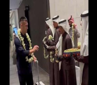 体育资讯12月31日报道宣称 国米全队抵达利雅得备战接下来的意大利超级杯,沙特当地代表迎接并为球员们送上花环。