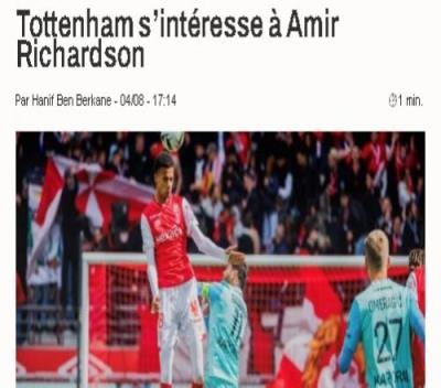 体育资讯8月5日报道宣 法国媒体footmercato报道,热刺正在关注22岁摩洛哥中场阿米尔-理查德森。