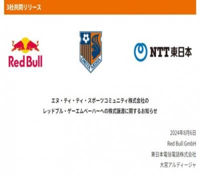大宫松鼠的东家——日本电信电话东株式会社,已经和红牛集团签署了一份100%股份转让协议,将于2024年9月正式生效。
