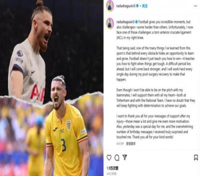 德拉古辛对此表示:“足球带给过我很多难以置信的时刻,但同时也有着很多挑战,其中一些尤为艰难。遗憾的是,我现在就面临着其中之一:右膝前十字韧带撕裂。”