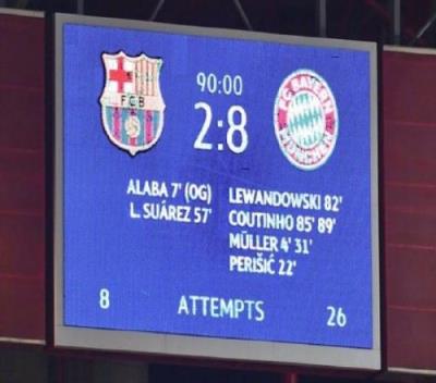 2020年8月14日,塞蒂恩率领巴萨在欧冠1/4决赛遭遇拜仁,结果以2-8的比分惨败。这场比赛也成为了塞蒂恩执教生涯的最大失利。