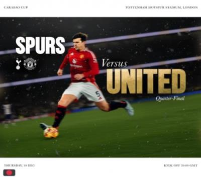 体育资讯12月19日报道宣称 联赛杯1/4决赛,曼联客战热刺,红魔赛前发布海报预热。