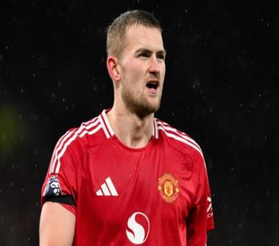 德里赫特和曼联本场的两粒丢球都有关。他手球送点导致了一粒丢球,另外一球他也是丢球背景板。