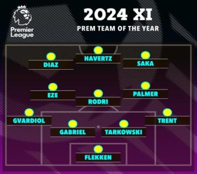 太阳报评英超年度最佳阵:无哈兰德萨拉赫枪手3人&红军曼城各2人