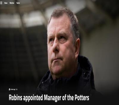 体育资讯1月1日报道宣称 官方消息,55岁的马克-罗宾斯成为斯托克城新任主教练,双方签约三年半,同时在英格兰U20工作的保罗-内文以及威尔士国家队的助理教练詹姆斯-罗伯里将成为斯托克城的助理教练。