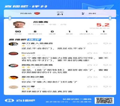 体育资讯01月16日报道宣称 英超第21轮阿森纳2-1击败热刺,本场比赛阿森纳队长厄德高助攻特罗萨德破门,他还凭借本场的表现获评全场最高分(8分)。但是吧友们并不买账,对厄德高错失良机很不满,评分仅为5.2分。