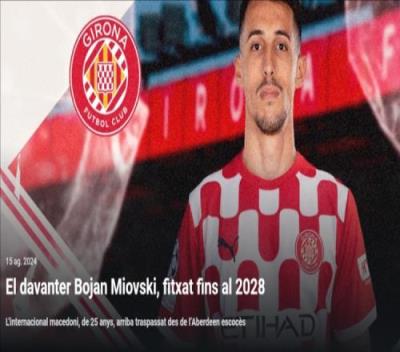 官方:赫罗纳签下阿伯丁前锋米奥夫斯基,转会费680万镑签4年