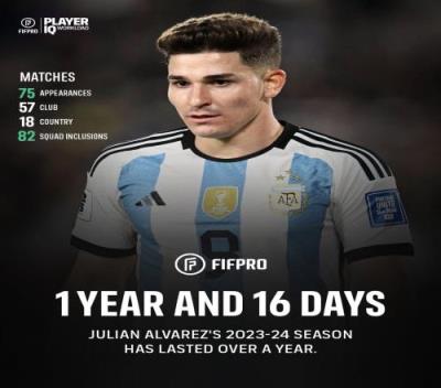 阿尔瓦雷斯的赛季已经持续将近13个月,这清楚地表明了当前赛程的要求是不可持续的。