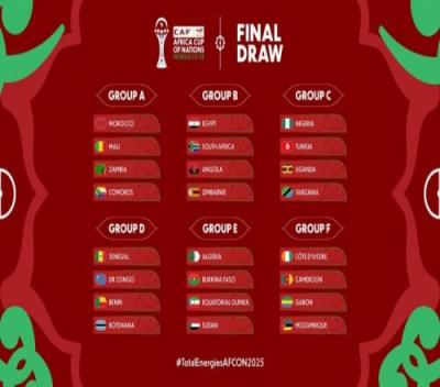 体育资讯1月28日报道宣称 2025年非洲杯分组抽签结果今日出炉,具体如下: