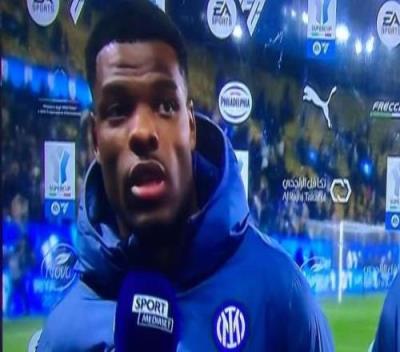 体育资讯1月3日报道宣称 意超杯半决赛,邓弗里斯倒钩+世界波,国米2-0击败亚特兰大。赛后,邓弗里斯接受Sportmediaset采访。
