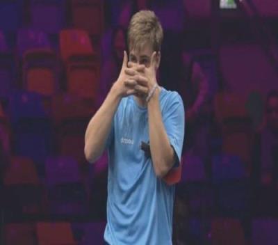 体育资讯11月8日报道宣称 WTT法兰克福冠军赛男单1/8决赛,莫雷加德3-0击败英国选手皮奇福德晋级8强,在赢球后,莫雷加德做出葡体前锋约克雷斯的庆祝动作。