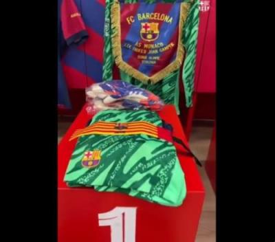 体育资讯8月12日报道宣 罗贝托在昨晚已经自宣离开巴萨。而巴萨官推今日晒出更衣室情况,可以看到特狮将出任队长。