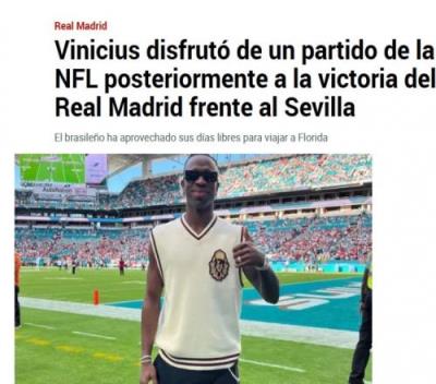 维尼修斯还在迈阿密观看了NFL(美式橄榄球联盟)的一场比赛,而在美国度假期间,维尼修斯仍然在社媒关注着皇马与塞维利亚的比赛。