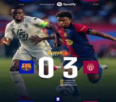 体育资讯8月13日报道宣 在北京时间今天凌晨结束的甘伯杯比赛中,巴萨0-3完败摩纳哥。