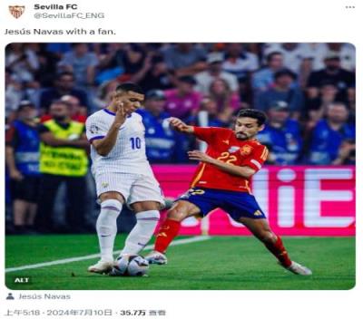 体育资讯7月10日报道宣称 在此前结束的2024欧洲杯半决赛中,西班牙以2-1的比分逆转击败法国,晋级决赛。本场比赛效力于塞维利亚队38岁老将纳瓦斯在防守端一定程度上限制了法国队长姆巴佩的发挥。