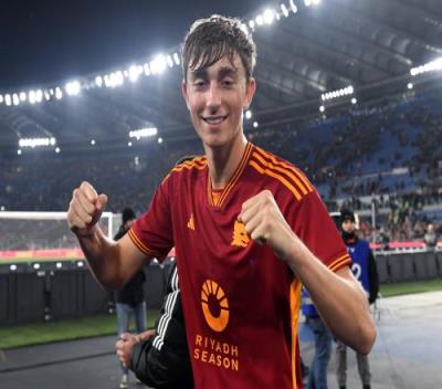 荷兰中卫怀森现年19岁,德转身价估值1000万欧,身高195cm。2021年,尤文青训花费47万欧元签下了这名小将。上赛季冬窗,怀森被外租至罗马效力,共出战14场比赛,打进2球、助攻1次,出场时间602分钟。