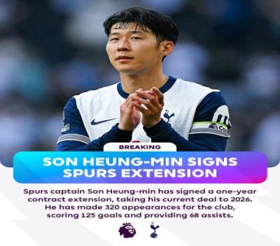 体育资讯01月07日报道宣称 热刺官方发布公告,宣布与球队队长孙兴慜续约至2026年。这意味着孙兴慜将在热刺效力第11个赛季。