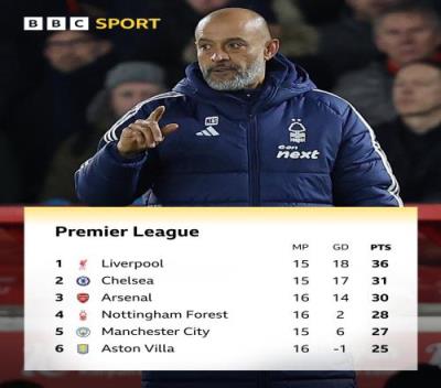 体育资讯12月15日报道宣称 英超第16轮,诺丁汉森林主场2-1力克阿斯顿维拉,先赛暂升英超第四,领先曼城1分。