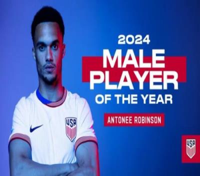 官方:27岁富勒姆后卫罗宾逊当选美国2024年度最佳男足球员
