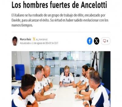 西媒表示,卡洛-安切洛蒂(65岁)最大的优点是懂得随着时间的推移调整自己的执教理念。他身边汇聚了一支精英工作团队,任何细节都不会被忽视。