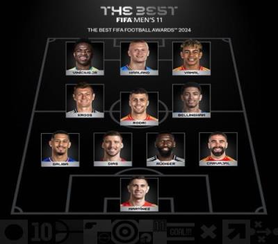 体育资讯12月18日报道宣称 FIFA年度颁奖,官方公布了FIFA2024年度最佳阵容。