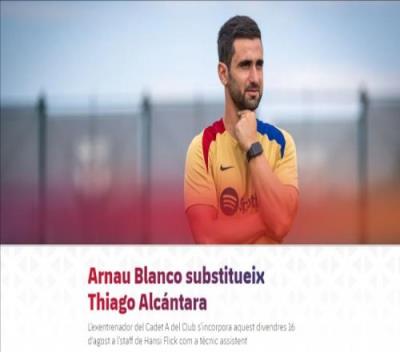 巴萨官方:U16教练阿瑙布兰科成为一线队助教,蒂亚戈今天离队