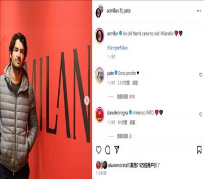 体育资讯12月14日报道宣称 米兰官方晒照,帕托回到俱乐部参观米兰内洛。