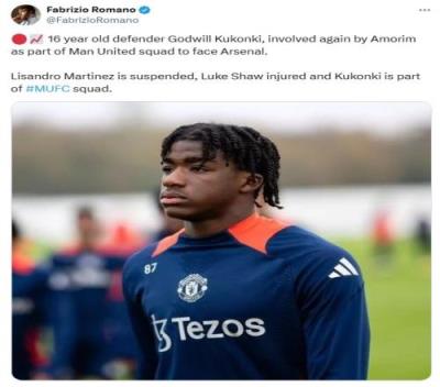 曼晚&罗马诺:曼联16岁中卫库孔基将首次入选一线队比赛日名单
