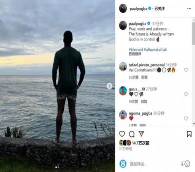 博格巴在社交媒体上晒出自己的背影照片,配文:“祈祷、努力和耐心,未来已经写好,上帝掌控一切。”