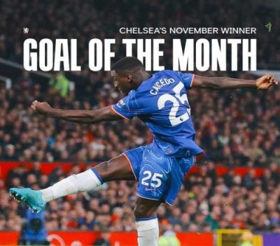 11月5场轰14球!切尔西官方:凯塞多凌空世界波当选11月最佳进球