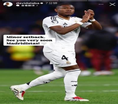 阿拉巴写道:只是一次小小的挫折,马德里主义者们,我很快就会再见到你们!