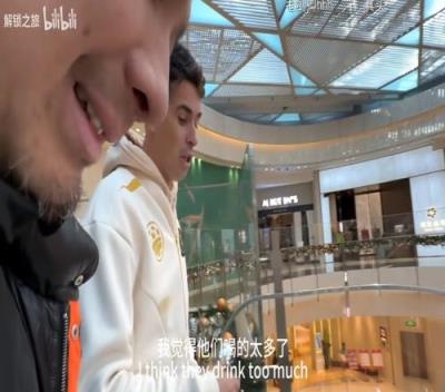 我认为比起出去玩中国球员更喜欢喝酒,我觉得他们喝的太多了,我觉得他们不喜欢夜店,我想他们喜欢喝酒。就像聚餐一样,就是干杯,他们喝得挺多的。但是在欧洲或巴西人,他们喝但是出门喝,他们喜欢夜店。还是有点不一样的。