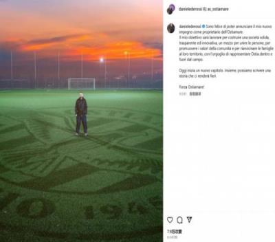 体育资讯1月25日报道宣称 罗马名宿德罗西在今日通过社媒自宣,成为罗马业余俱乐部奥斯蒂亚马雷的新老板。