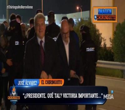 巴萨主席拉波尔塔离开球场时笑容满面,他对媒体说道:“是的,很高兴,谢谢。”